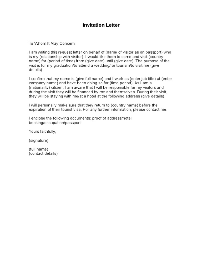 This is also seen as a visa for tourism in the particular country. Make sure you do not make any mistakes while writing the letter. You must tell the truth and plan to keep the promises you make in the letter. The names on it are fictitious but this format has been used and visas have been issued using this format. This sample is useful when applying for a usa visa, canadian visa, schengen visa, uk visa, australian visa, south korean visa, japan visa, turkish visa, etc. They can write this letter to invite parents, relatives, friends, and any other guest. My name is hanna peterson and i'd like to ask for consideration of a visitor visa for my parents. One very common reason people travel to the schengen area is to visit relatives or friends. For a business visa, you will have to get an invitation letter from a registered business firm/organization. Invitation letter for visa application (format) dear {mr./mrs./ms. Sample invitation letter for canadian visa. Sample invitation letter for australian visa written to friends. These letters should be sent to the visitor you are inviting.